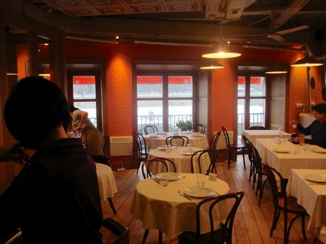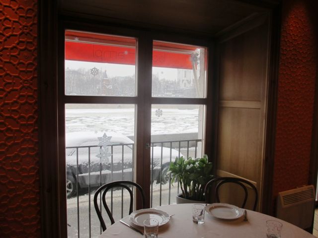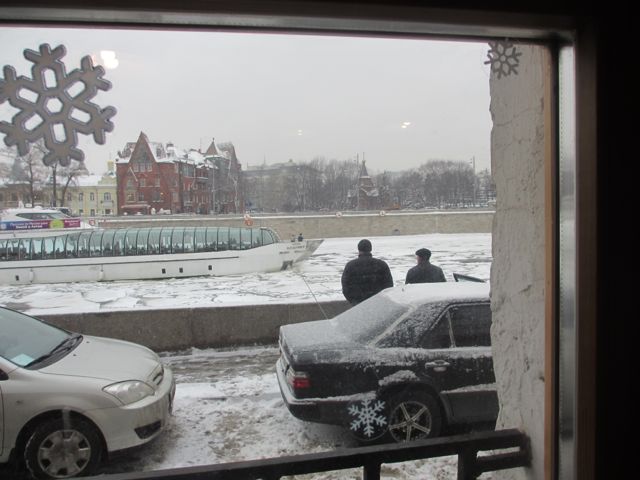 ところで、食事中に窓から冬のモスクワ名物、砕氷船クルーズが見えました。