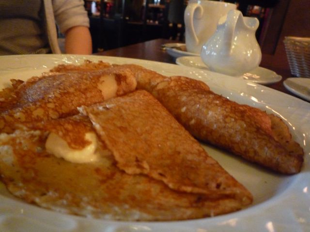 ブリヌイ(ロシアのパンケーキ)もボリュームたっぷり。