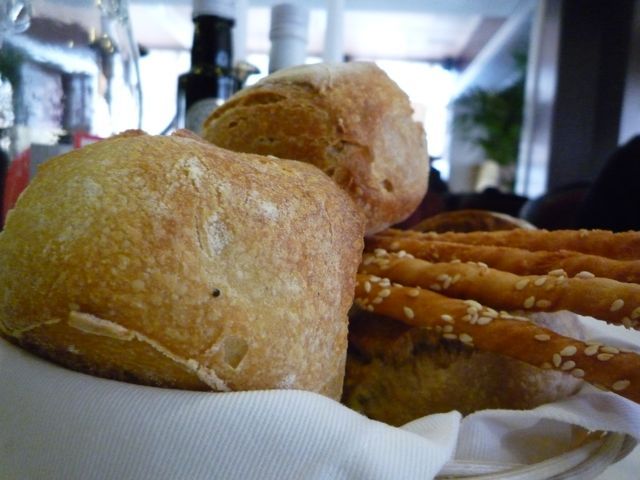 温められたパンとグリッシーニ。